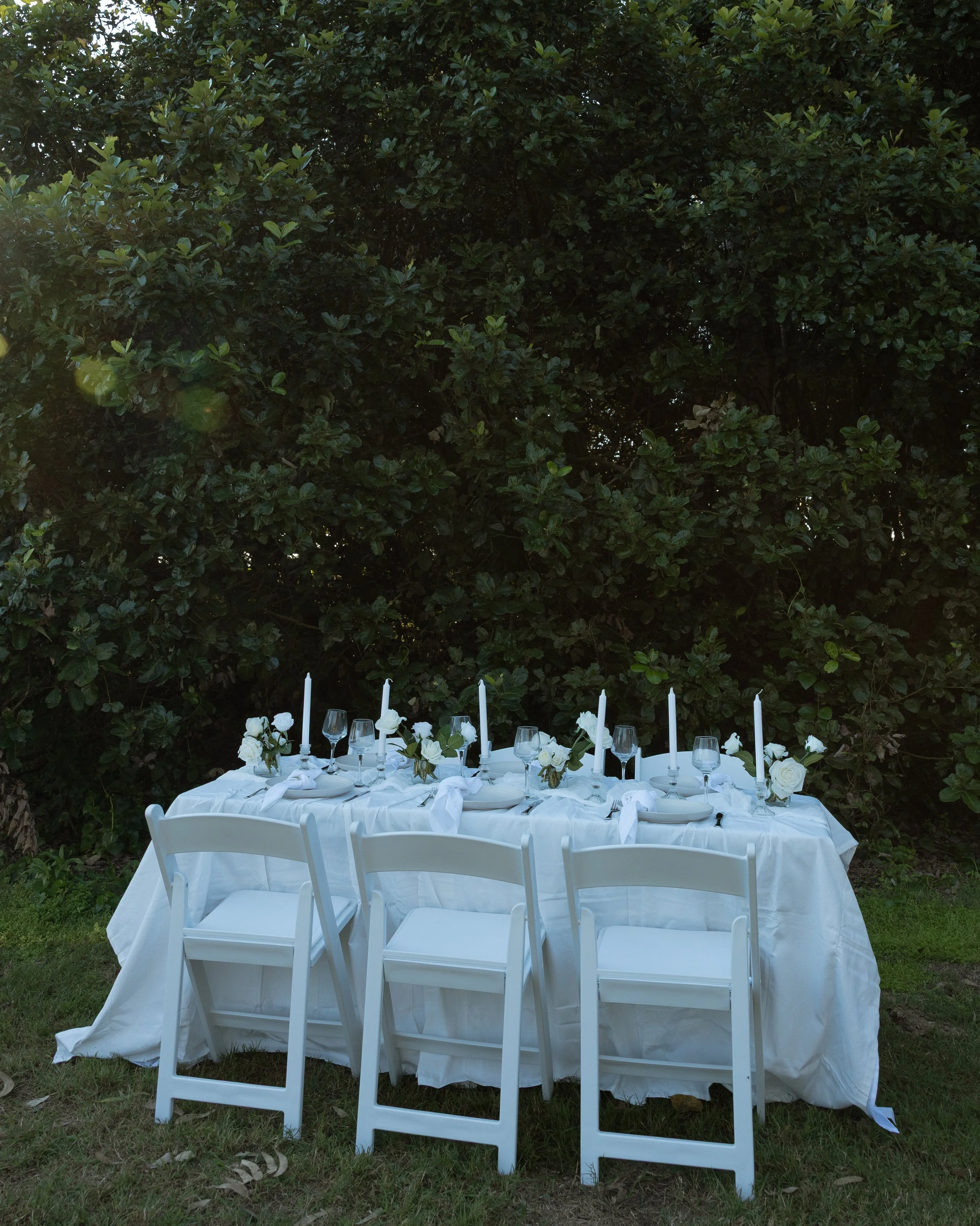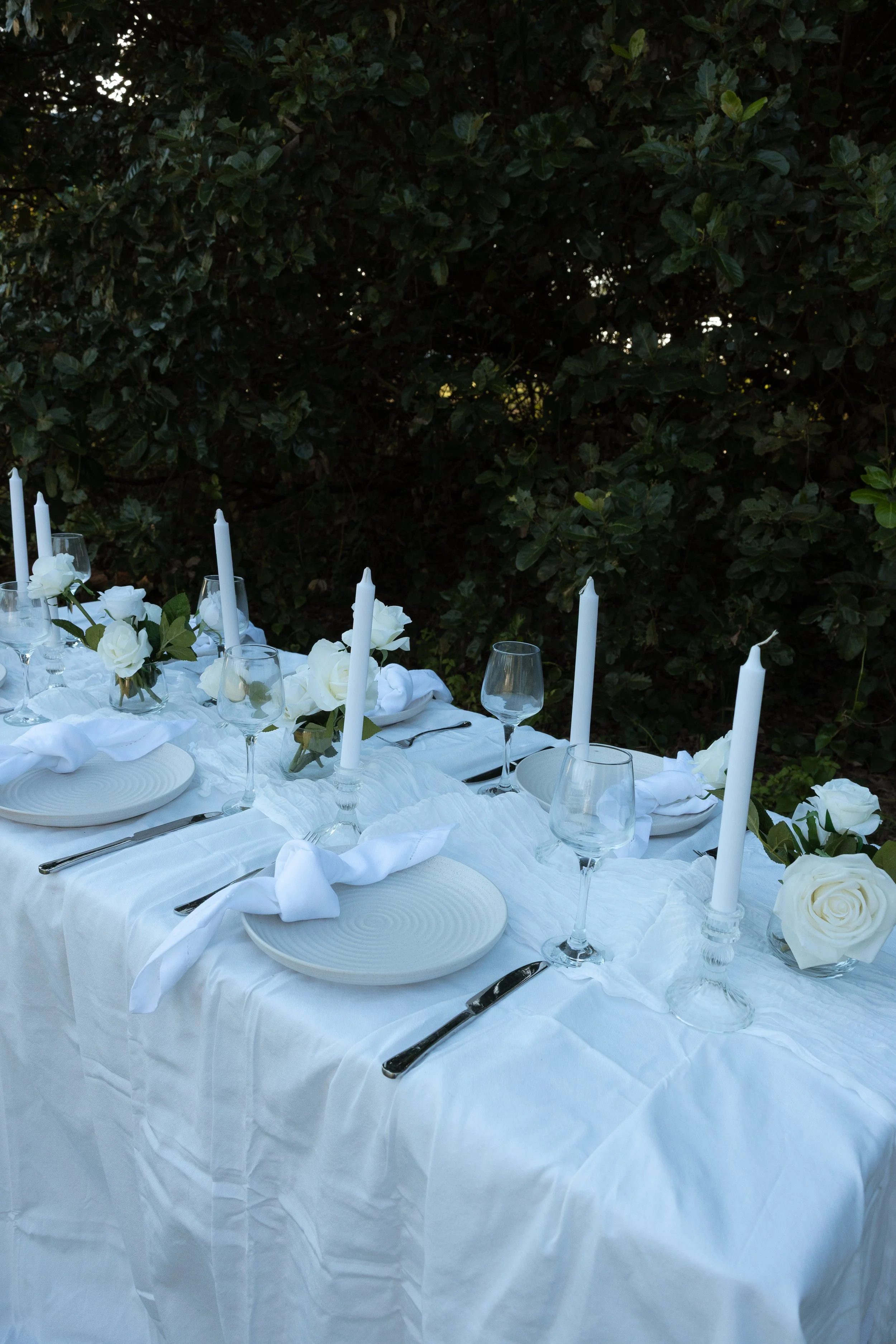 Whether it’s a quiet intimate dinner, a small wedding, or a special gathering with friends and family, we carefully consider every element: the flow of the florals, the rhythm of the candles, the gentle layering of textures, and the harmony of colour. Each piece is chosen and styled with care, so your table doesn’t just look beautiful - it feels beautiful.