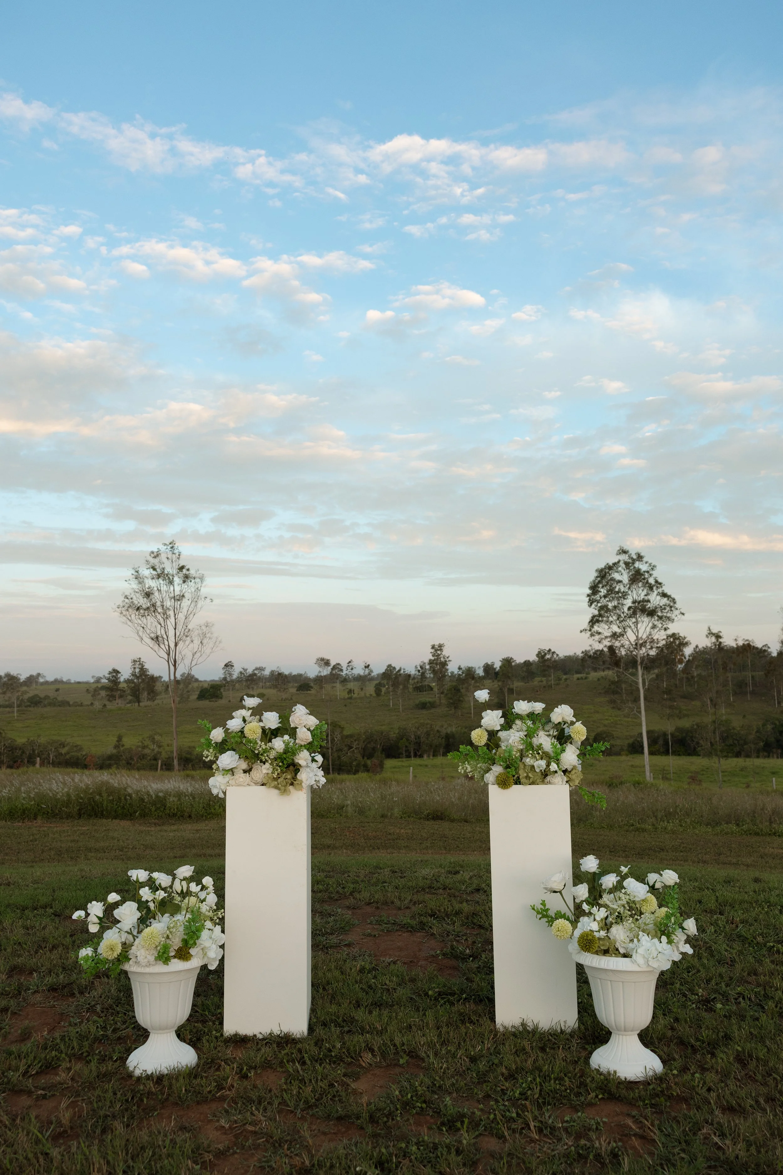 • Choice of two white plinths with plinth-top florals and statement floor arrangements,